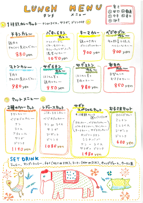 鶴瀬駅徒歩5分本格カレーとタンドリー サダナレストラン&バー Lunch MENU