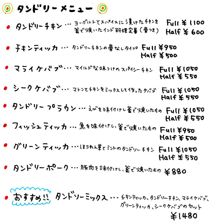鶴瀬駅徒歩5分本格カレーとタンドリー サダナレストラン&バー MENU